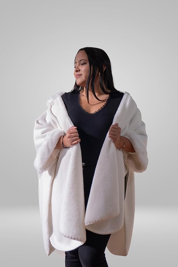 Wrap yourself in the timeless elegance and warmth of this luxury alpaca wool cape, handcrafted in Ecuador. Designed with comfort and sophistication in mind, this piece features ultra soft faux fur trim along the collar and sleeves, adding a touch of glamour to a naturally cozy garment. Made from premium grade alpaca wool, this cape offers exceptional insulation without the bulk, making it the perfect outer layer for chilly evenings or special occasions. Its flowing silhouette drapes beautifully on all body types, while the open-front design allows for effortless layering over any outfit. Whether you're dressing up for a winter event or elevating your everyday style, this cape is a statement in artisan craftsmanship and sustainable fashion.